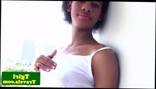 Black tgirl cockriding while jerking: black tgirl cockriding while jerking then blows creamy load with this lucky guy