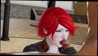 A painted hentai girl helped her boyfriend's huge dick to cum